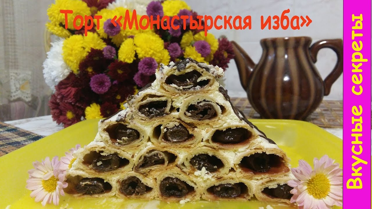 отовим популярный сметанный торт Монастырская изба с вишней. Это очень большой, вкусный и оригинальный десерт с большим количеством вишен и нежного крема. Рецепт необычный, но я пошагово расскажу вам в видео все нюансы приготовления этого торта. Кто не знал этот рецепт - записывайте! Ингредиенты: для теста: 400-450 гр муки; 200 гр сливочного масла; 200 гр сметаны; 0,5 ч.л. соды +уксус. И для начинки трубочек у меня уходит примерно 700 гр вишни в собственном соку. Для крема: 1 л 20% сметаны (после отцеживания остается 750-800 гр); 80-100 гр сахарной пудры (добавляйте по вкусу); Ванильная эссенция или ванилин. Трубочки выпекаются в духовке, разогретой до 190 градусов около 25 минут. Для украшения торта Вы можете использовать шоколад, кокосовую стружку, миндальные хлопья . Приятного Всем аппетита!