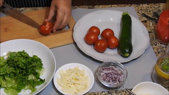 Салат ВДОХНОВЕНИЕ. Что бы такое съесть чтобы не хотелось есть! От такого салата никто не откажется! 1/2 цукини 100гр 150 гр помидоры 25 гр сыр с мин.% жироности 1/4 лук салатный красный 2-3 салатных листа заправка: 0.5 ст.л растительное масло+ 0.5-1 ч.л бальзамический уксус, + 0.5-1 ч.л лимонный сок, 1 ч.л горчицы не острой, соль специи с красным перцем 1/2 zucchini 100g 150 g of tomatoes 25 g cheese with min.% Fat content 1/4 onion salad red 2-3 lettuce leaves dressing: 1 tbsp vegetable oil + 0.5-1 tsp balsamic vinegar, + 0.5-1 tsp lemon juice, 1 tsp mustard is not spicy, salt spices with red pepper