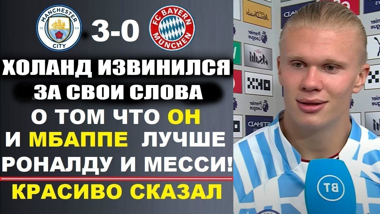 ХОЛАНД ИЗВИНИЛСЯ ПЕРЕД РОНАЛДУ И МЕССИ ЗА СВОИ СЛОВА ЧТО ОН ЛУЧШЕ НИХ МАНЧЕСТЕР СИТИ 3-0 БАВАРИЯ