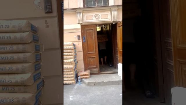 Строители таскают по 3 мешка строительной смеси по 30 кг.