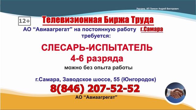 ТЕЛЕВИЗИОННАЯ БИРЖА ТРУДА – это слайдовая программа по трудоустройству, где голосом озвучивается ВАКАНСИЯ и ТЕЛЕФОН прямого работодателя. ТЕЛЕВИЗИОННАЯ БИРЖА ТРУДА выходит в ОНЛАЙН-КИНОТЕАТРАХ и на сайтах телеканалов в г. Самара и Самарская область