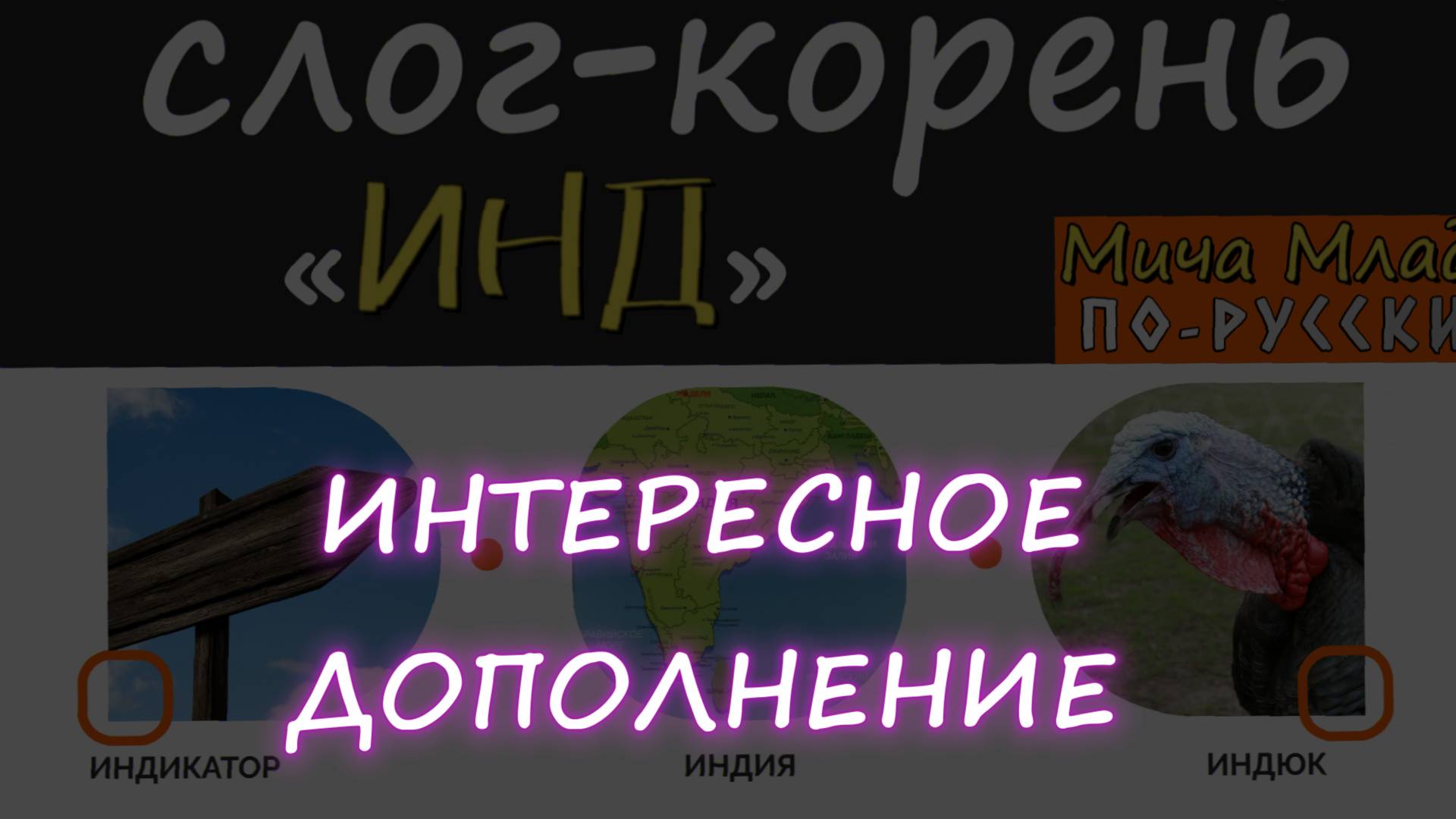 https://rutube.ru/video/1fd244e684ec01acf1f247fed13d8cca/ «ИНДИЯ», «ИНДЮК», «ИНДИКАТОР» значение? Первый ролик https://rutube.ru/video/8565c04e2d8596e5fb07c735d2eeaf81/ - Значения букв. Праязык [1] Важно для первого ролика https://rutube.ru/video/2401c9d3b282ae4336835f5bfa229a98/ - Значение и начертание «БУКВ». Русский - это и есть праязык Второй ролик https://rutube.ru/video/536aa84c3c013d282b0b84bacf22f494/ - Значения слов. Праязык [2]. Поиск корня Третий ролик https://rutube.ru/video/7fac0865723b05a86c0e9c1ac717678a/ - Значения слов. Праязык [3]. Подробный разбор (20 слов)