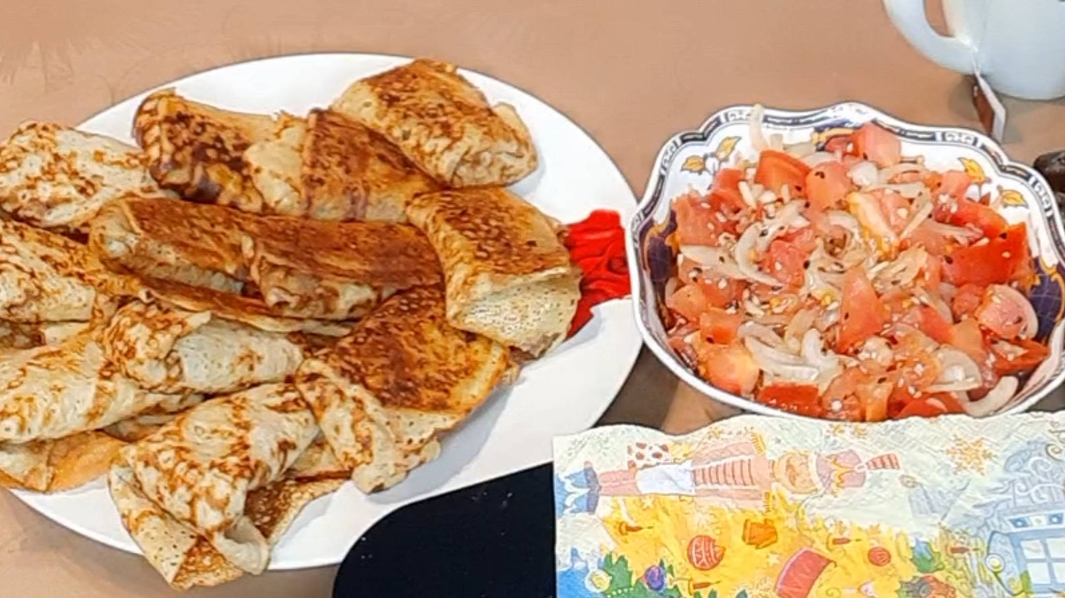 Блинчики фаршированные и салат из помидоров 🍅 Мой рецепт приготовления Рубрика Готовим вместе 👩