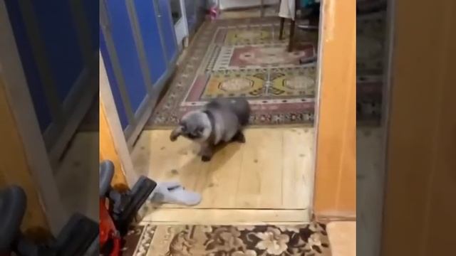 Кот атакует тапок