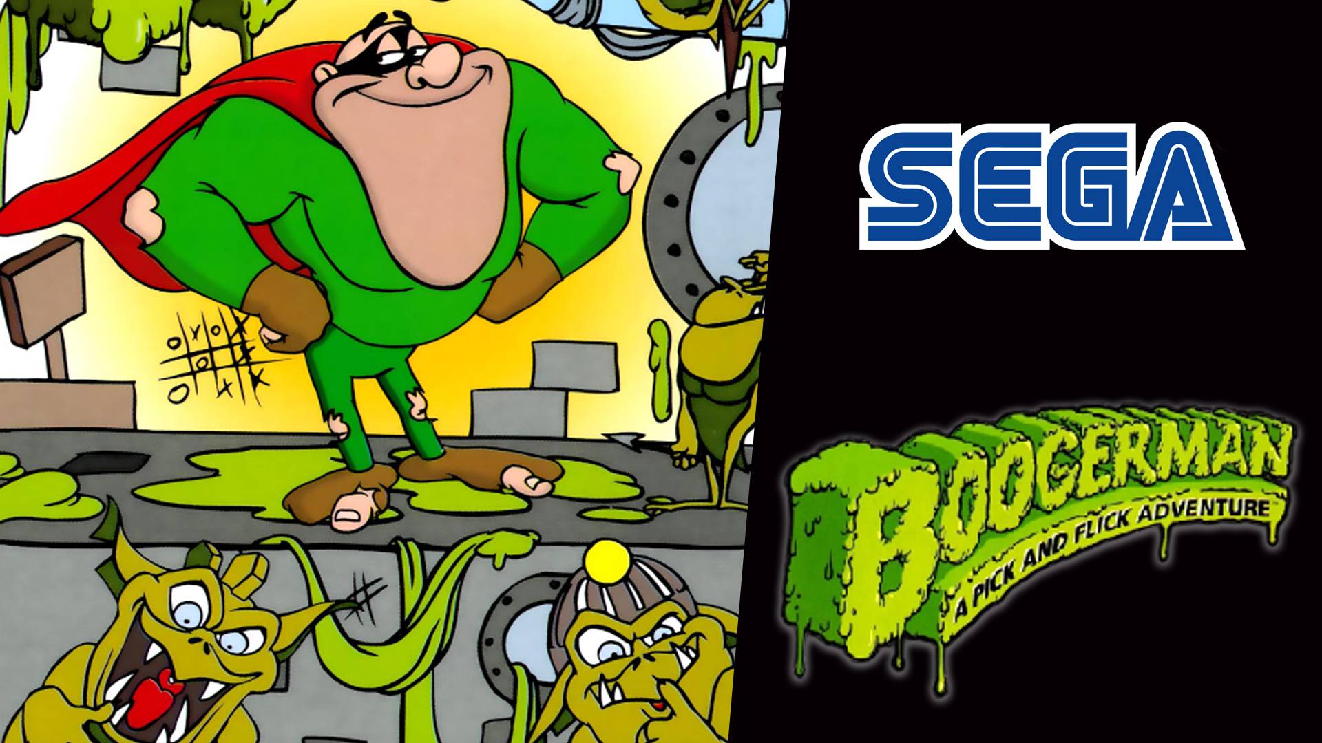 Boogerman: A Pick and Flick Adventure видеоигра в жанре платформер, разработанная компанией Interplay для игровой платформы Sega Mega Drive/Genesis в 1994 году. Также были выпущены версии для SNES (1995) и Wii Virtual Console (2008). В 1996 году выходили две нелицензионные порт-версии для NES\Dendy от SuperGame и RexSoft, а также две игры по мотивам на Java с названием Excreman (2005) и Excreman 2 (2006). Сюжет Игра начинается с небольшой предыстории. Профессор Стинкбаум изобрёл устройство под названием Zap-O-Matic, с помощью которого можно перерабатывать любые отходы, а продукты их «распада» сбрасываются через «портал» в другое измерение (Dimension X Crement). Миллионер Снотти Рэгсдейл, узнав об этом изобретении, инкогнито устроился на работу в лабораторию профессора под псевдонимом. И вот однажды он заметил, как неизвестный злодей похищает главный агрегат — редкий кристалл под названием Snotrium 357, без которого механизм не может работать. Чтобы предотвратить глобальное загрязнение, Рэгсдейл (супергерой Бугермэн), воспользовавшись «порталом», отправился в другое измерение. Здесь ему нужно разыскать злодея и забрать у него то, что он украл. Игровой процесс По игровому процессу версии игры во многом сходны между собой. Главный персонаж игры — супергерой Бугермэн (англ. Boogerman), спасающий планету от глобального загрязнения. Как и любой супергерой, Бугермэн обладает уникальными и очень своеобразными «суперспособностями»: он бросает во врагов свои сопли, проводит «газовые атаки» и может убивать врагов, запрыгивая им на голову. Ему предстоит пройти несколько уровней, зачистить их от врагов, сразиться с боссами, а в конце победить главного злодея. Уровни выполнены в виде замкнутых локаций с боковым сайд-скроллингом и двухмерной графикой. Каждый большой уровень разделён на три — четыре части. На них много разнообразных врагов, тайников, бонусов и полезных предметов. Встречаются также препятствия в виде пропастей и ловушек. Иногда попадается «лифт-телепорт», напоминающий огромный нос (хотя на последнем уровне «лифт» выполнен в форме головы главного Босса). Также присутствуют «точки сохранения» — здесь они выполнены в виде деревенского деревянного туалета с надписью BM на двери. В конце больших уровней находятся боссы — особо сильные противники. Боссы (суперзлодеи) обладают значительным запасом здоровья и гораздо сильнее обычных противников и самого героя. Для каждого из боссов существует своя определённая «тактика». Например, во время сражения с первым боссом нужно, перепрыгивая с одного дерева на другое, уклоняться от атак противника. Враги в игре — это тролли и гоблины, вооружённые копьями, летучие мыши, призраки, улитки и другие монстры; они довольно слабы, но многочисленны. Бывают и более «крепкие» противники. Например, один из них вооружён дубиной, которой наносит ощутимые удары, другой обладает смертоносным криком, а третий способен поедать полезные предметы. В игре много полезных предметов. К примеру, из вантузов, собранных на уровне, можно соорудить «лестницу», по которой Бугермэн доберётся до дополнительной жизни. Перец придаёт герою «огненное дыхание» (причём двустороннее) и позволяет летать, комки некой зелёной массы увеличивают «боезапас», бутылка с буквой M совершенствует «вооружение», а банки с бобами продлевают линейку «суперспособностей». Также полезные предметы пополняют запас игровых очков. Игра имеет с