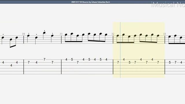 Guitar TAB - J.S. Bach - BWV 817 VII Bouree (1685-1750) | Tutorial Sheet Lesson #iMn