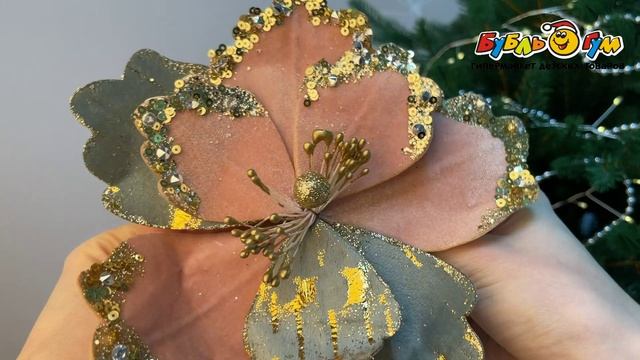 333595 Украшение елочное Мак винтажное велюровое с пайетками разноцветное 15см