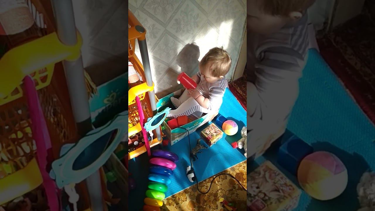 Маленький Лёва, играет с коробкой