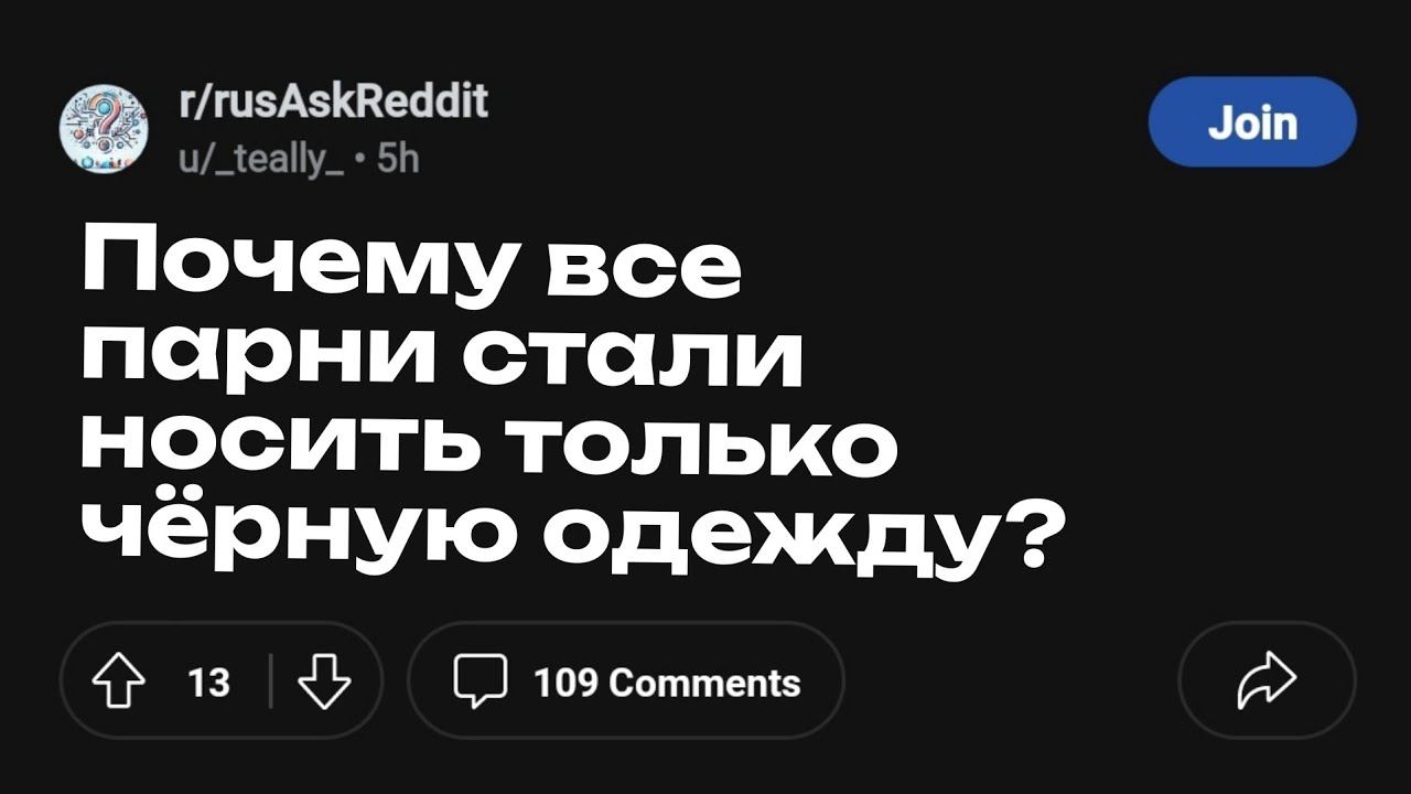 ПОЧЕМУ ВСЕ ПАРНИ НОСЯТ ТОЛЬКО ЧЁРНУЮ ОДЕЖДУ? | История Reddit