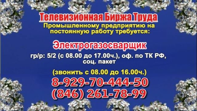 Вакансии и телефоны прямых работодателей в специализированной программе по трудоустройству "Телевизионная Биржа Труда" - г.САМАРА, г.ТОЛЬЯТТИ