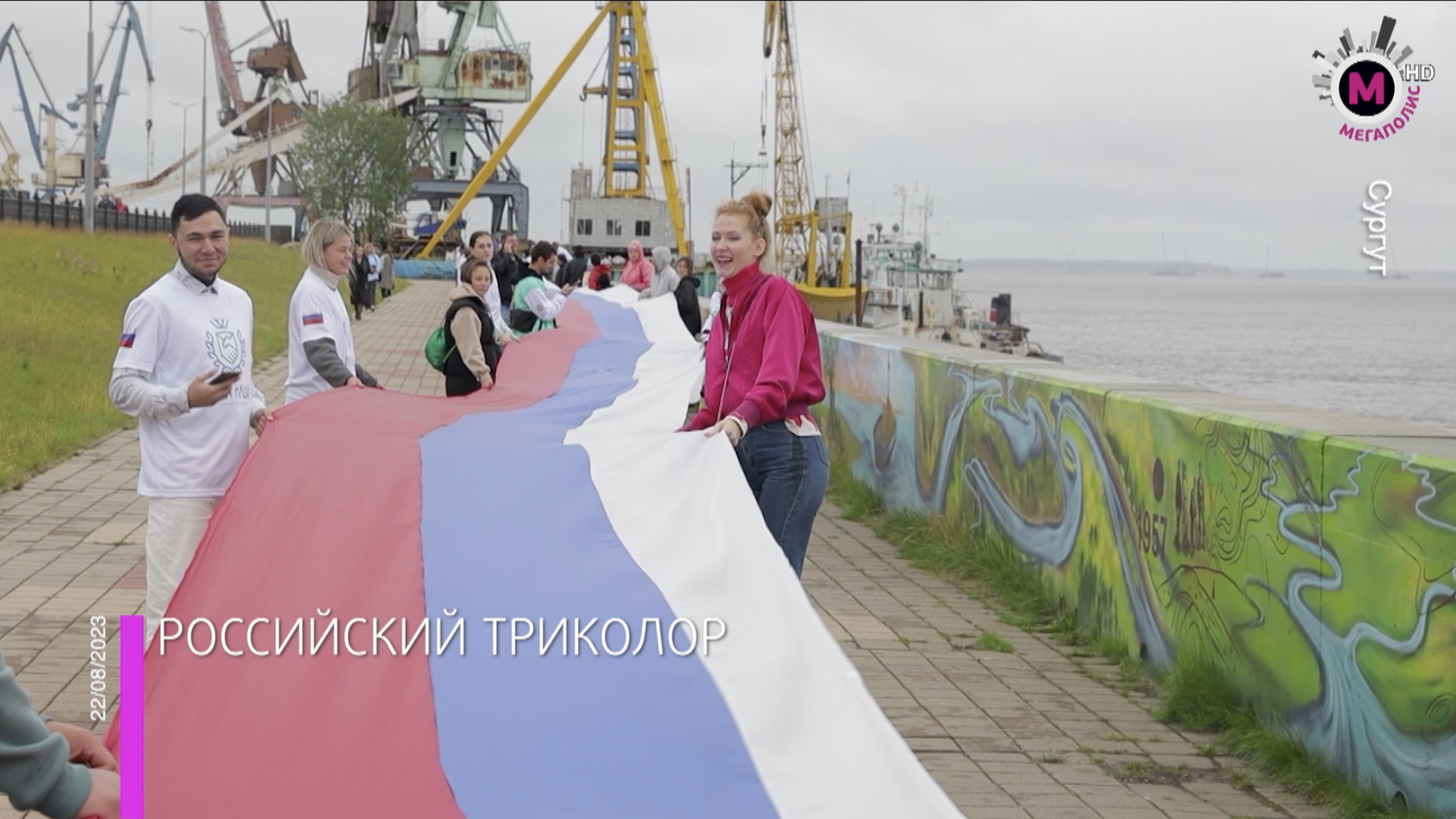 Масштабным флешмобом отметили в Сургуте День государственного флага страны. Чтобы развернуть российский триколор вдоль набережной Оби, организаторы привлекли более четырехсот человек. #мегаполисhd #мегаполисНовости #Югра
