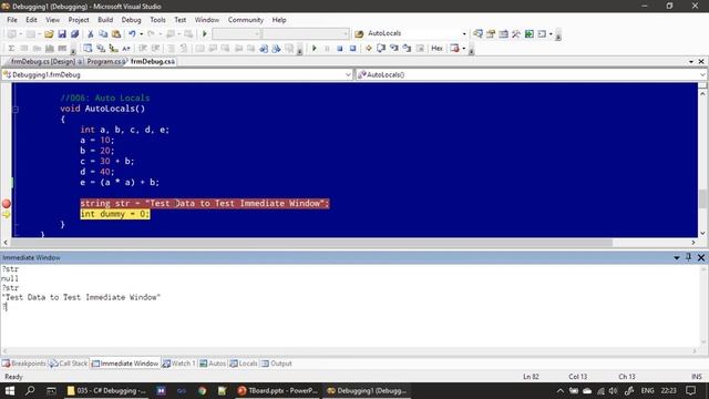 In this C# advanced video, we will see how to use Immediate Debug window to evaluate expressions which involve variables, operators and function call. Sample Project: https://drive.google.com/open?id=1Wk-yVejvX6IHsTGm35oj1eu_aGfsttfQ #CSharp #ImmediateWindow #Debugging