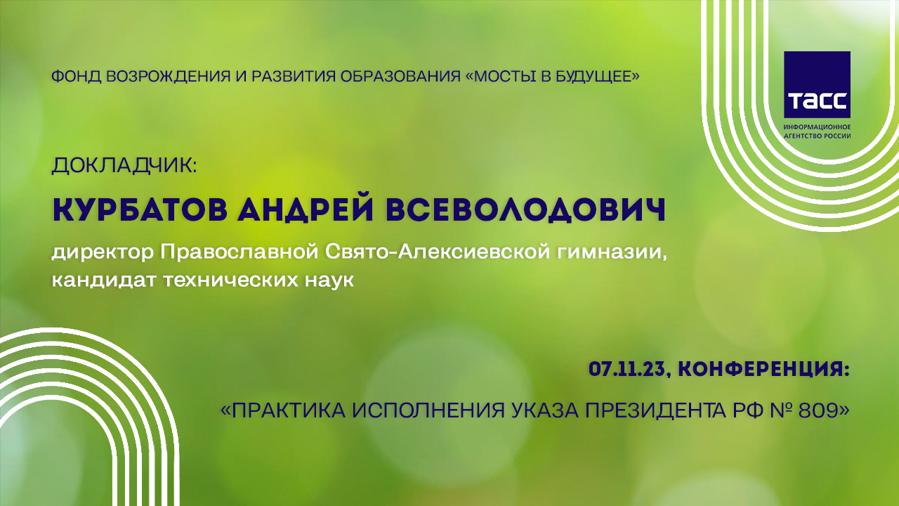 Андрей Всеволодович Курбатов, директор Православной Свято-Алексиевской гимназии, кандидат технических наук - принял участие в Конференции "Практика содействия исполнению Указа Президента РФ №809" Об утверждении Основ государственной политики по сохранению и укреплению традиционных российских духовно-нравственных ценностей". #указ809 #аннашафран #сергеймороз #мостывбудущее