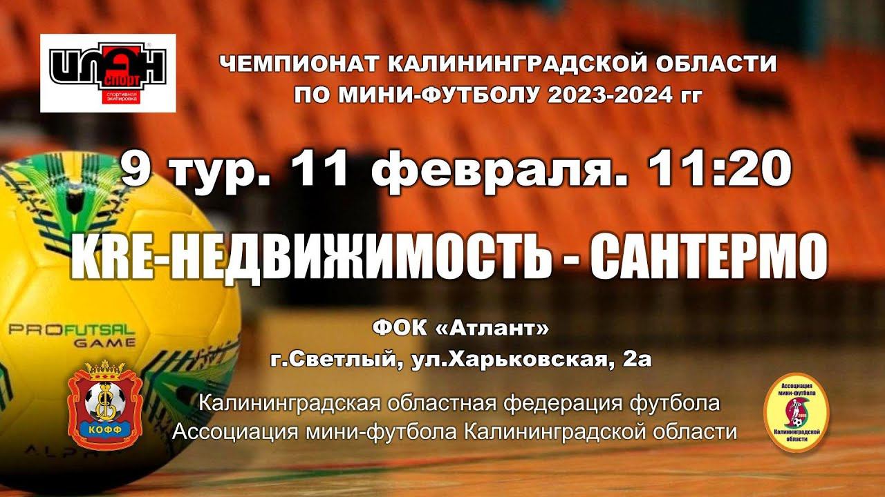 11.02.24. Мини-футбол. Чемпионат Калининградской области. Суперлига. 9-й тур. KRE-Недвижимость - СанТермо