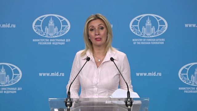 Брифинг официального представителя МИД России М.В.Захаровой, Москва, 2 августа 2023 года 00:00:00 О третьем Международном молодежном лагере стран БРИКС 00:01:55 О проведении ряда мероприятий по МИБ в рамках второго Саммита Россия-Африка 00:04:57 Об украинском кризисе 00:25:28 О преступлениях киевского режима с 2014 г. 00:40:14 О заявлении Верховного комиссара ООН по правам человека по поводу первой годовщины событий в Еленовке 00:42:32 О заседании СБ ООН по вопросу систематического использования Украиной террористических методов 00:44:22 О сотрудничестве Вашингтона и Международного уголовного суда 00:47:36 О высказываниях директора МИ-6 в Праге 00:51:38 О ситуации в Нигере 00:53:27 О реакции ЕС на поправки в закон «О некоммерческих организациях» 01:01:40 О невыполнении западными государствами-участниками ОБСЕ своих обязательств в части транспарентности передач ЛСО 01:06:20 О новых свидетельствах преступлений милитаристской Японии 01:10:34 О 60-летии со дня подписания Договора о запрещении испытаний ядерного оружия в атмосфере, в космическом пространстве и под водой 01:12:46 Международный день коренных народов мира 01:14:01 Из ответов на вопросы: 01:14:12 О некоторых высказываниях премьер-министра Армении 01:18:58 О расширении российского дипломатического присутствия в странах Африки 01:21:12 О переговорах США и Украины о гарантиях безопасности 01:24:43 Об отношении России к территориальным претензиям сторон в рамках НКУ 01:25:30 О работе по возвращению российских военнослужащих из украинского плена 01:25:58 О ситуации вокруг А.Кубанычбека 01:26:38 О некоторых высказываниях Генсека ООН 01:33:18 О мирных инициативах Саудовской Аравии по урегулирования украинского кризиса 01:38:13 О перспективах по урегулированию кризиса в Нигере 01:39:49 О сложностях в НКУ 01:41:02 Об инициативах по установке трофейного вооружения перед посольствами западных стран 01:45:10 О некоторых итогах Саммита Россия-Африка 01:52:10 Об антироссийских демонстрациях в Грузии 01:56:13 О происшествии на КПП в Лачинском коридоре 01:57:33 О запуске переговоров между Баку и Степанокертом 02:00:50 Об усилиях по разблокированию Лачинского коридора 02:01:53 О противодействии неоколониальной политике стран Запада 02:07:24 О роли СМИ в формировании общественного мнения 02:11:23 О роли вещания российских медиа на иностранных языках МИД России в "VK" (русская версия) https://vk.com/mid МИД России в "Facebook" https://www.facebook.com/MIDRussia МИД России в "Instagram" https://www.instagram.com/mid.rus/ МИД России в "Flickr" https://www.flickr.com/photos/mfarussia/ МИД России в"TikTok" https://www.tiktok.com/@midrussia МИД России в "RuTube" https://rutube.ru/channel/23489815