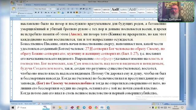 Быт. 5 глава. Родословие сынов Божиих! Ведущий Игорь Владимирович. 14.04.2025