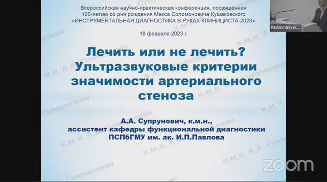 Лектор: Супрунович Андрей Александрович, к.м.н., врач ультразвуковой диагностики отделения функциональной диагностики, ассистент кафедры функциональной диагностики ФГБОУ ВО «Первый Санкт-Петербургский государственный медицинский университет им. академика И.П. Павлова» МЗ РФ