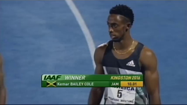 Kemar Bailey-Cole 10.01 edges Mike Rogers 10.03 Men's 100m Jamaica Invitational 2016