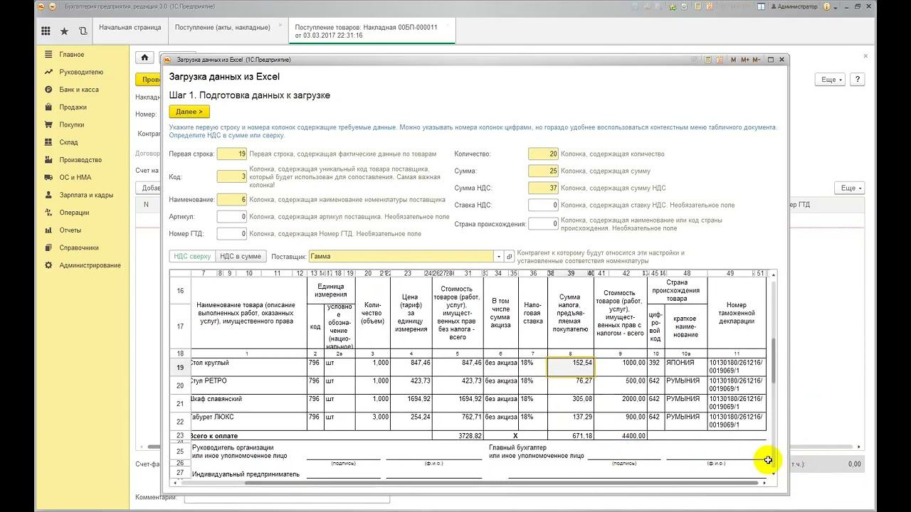 Загрузка данных из Excel в 1С: Бухгалтерия предприятия 8.3