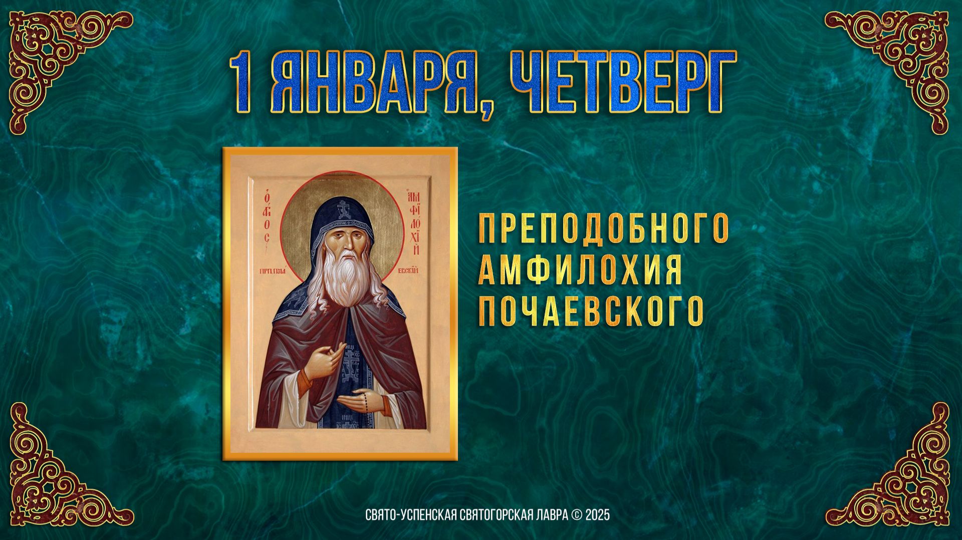 Преподобного Амфилохия Почаевского. 1 января 2026 г. Православный мультимедийный календарь