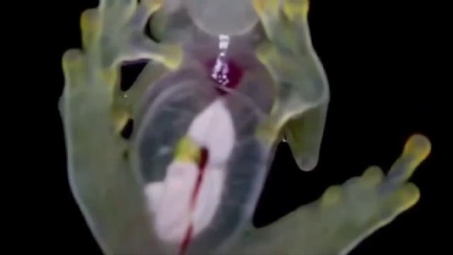 Это стеклянная лягушка — амфибия с прозрачной кожей.