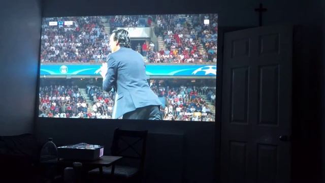My new optoma gt1080 projector playing football using my chromecast and the bt sports app. Great quality