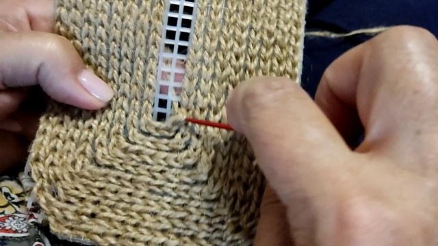 Вязание дна сумки, обвязка канвы