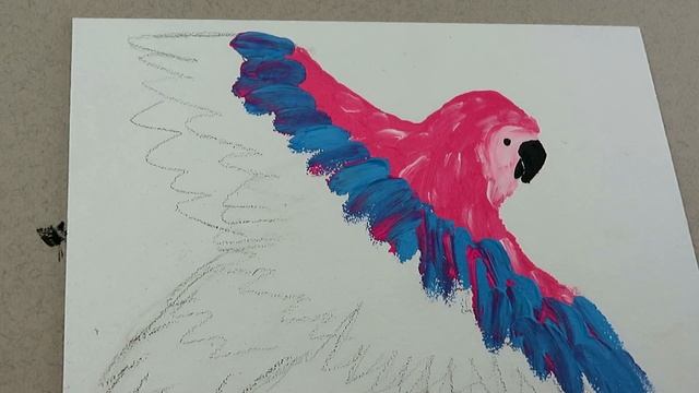 Простая пошаговая акриловая роспись попугая пальчиковой росписью