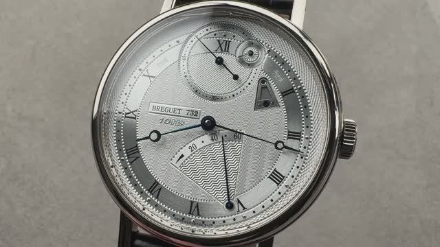 *перевести видео можно в Яндекс браузере Заводные часы Breguet Classique Chronométrie (7727BB/12/9WU) с ручным управлением. Корпус из белого золота диаметром 41 мм обрамляет серебряный циферблат на черном ремешке из кожи аллигатора с раскладывающейся пряжкой из белого золота. Функции включают в себя часы, минуты, секунды и индикатор запаса хода. Толщина этих часов Breguet также составляет 9,8 мм, а расстояние от выступа до выступа составляет 50,1 мм. Для получения более подробной информации ознакомьтесь с полным обзором Breguet Classique Chronométrie.