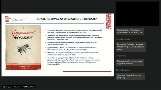 Песни военного времени фиксация и интерпретация
