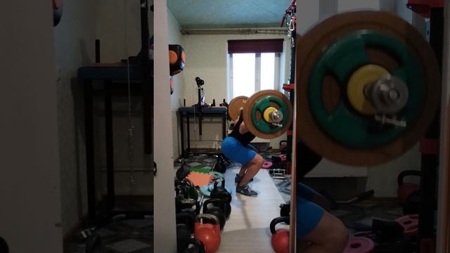 Свой вес на штанге 73,5 кг- присед 40 раз за пять минут 😎🏋️♀️😬