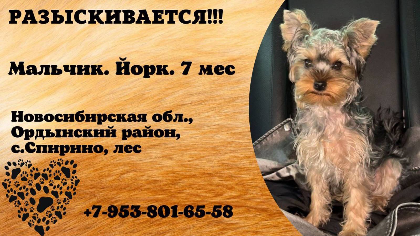 Пропала собака! Мальчик. Йорк. 7 месяцев. Новосибирская область, Ордынский район, с.Спирино.