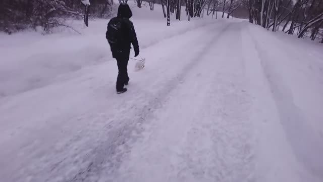 ЧУДНОЙ МУЖИК В МОРОЗ ВЫГУЛИВАЕТ НА ПОВОДКЕ БЕЛОГО КОТА КАК СОБАЧКУ