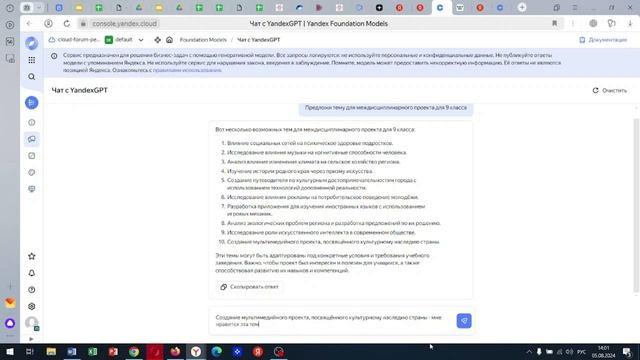 1.2 Yandex GPT для генерации идей