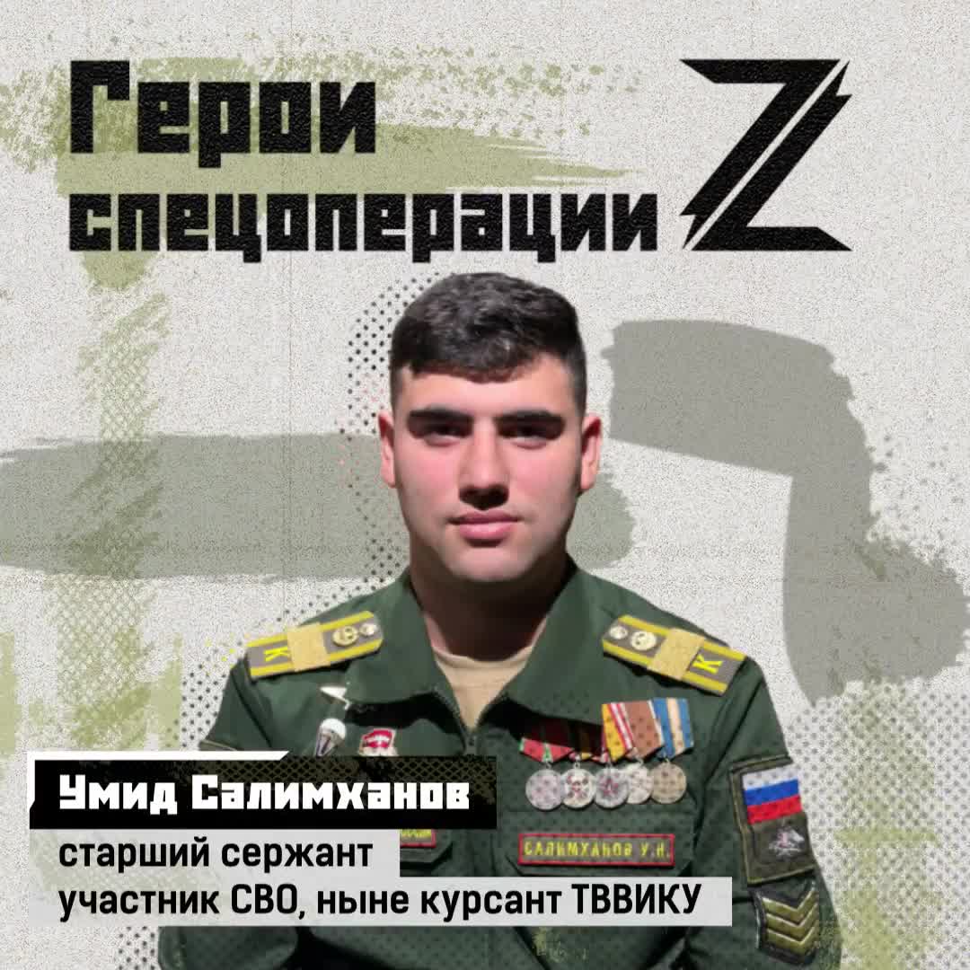Старший сержант Умид Салимханов — участник Парада Победы-2025. Он получил медаль Суворова за уничтожение укрепрайона противника и железнодорожного полотна с помощью боевой машины УР-77 «Змей-Горыныч». Это помогло нашим десантникам продвинуться вперед. «На СВО я понял, что нужно учиться. Всё пригодится в жизни», — говорит Умид, мечтающий быть офицером.