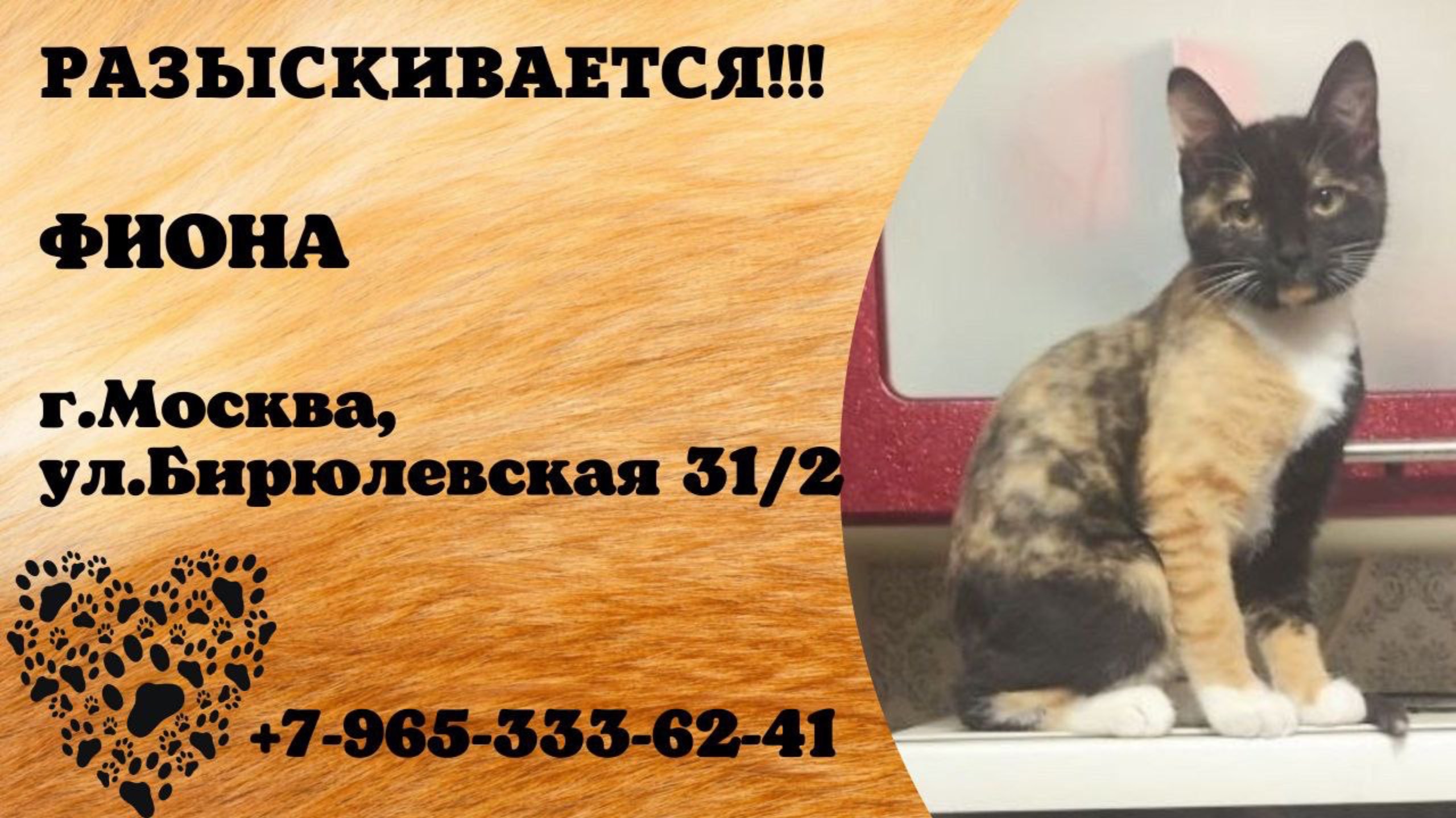 Пропала кошка! ФИОНА. г.Москва, ул.Бирюлевская 31/2.