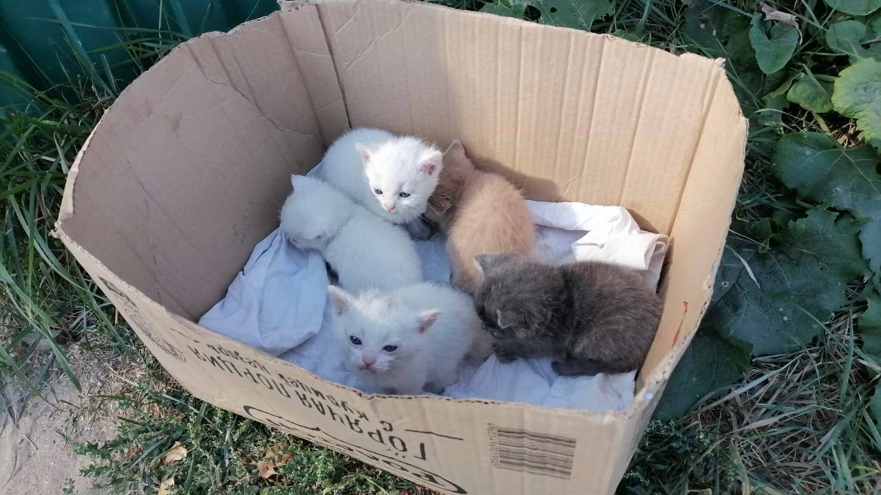 Посылка от спасателей у забора. Приютские кошки.