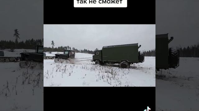 Сдесь показывают,как трактор ДТ-75 тянет с заклинившими от холода газ-66 в армии через поле.