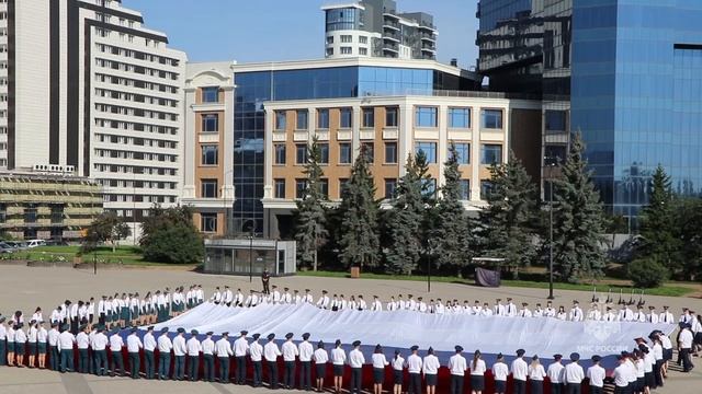 Представители силовых ведомств развернули в Красноярске флаг площадью более 400 квадратных метров