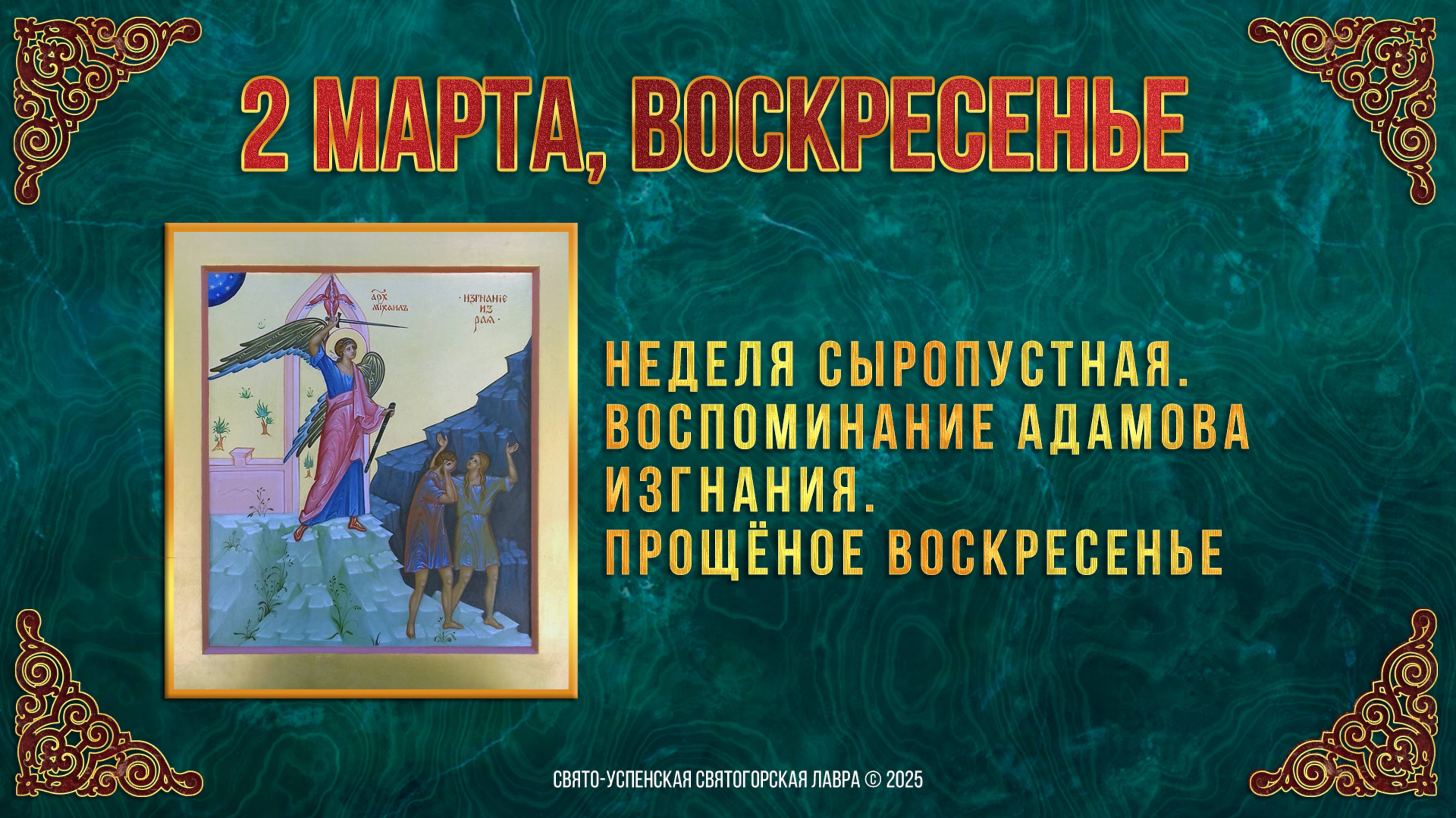 Неделя сыропустная. Воспоминание Адамова изгнания. Прощёное воскресенье. 2 марта 2025 г.