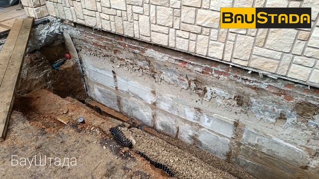На данном объекте был реализован комплекс работ по защите фундамента подвала от затопления. Были применены разные комбинации устройства дренажа по периметру строения для достижения необходимого результата.
