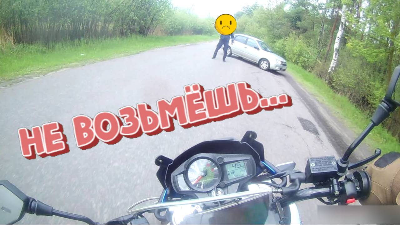 Человек из гражданского автомобиля без каких либо опознавательных знаков пытался продать полосатую палочку. При этом продавец грубо нарушил ПДД, которое могло привести к серьезному ДТП.