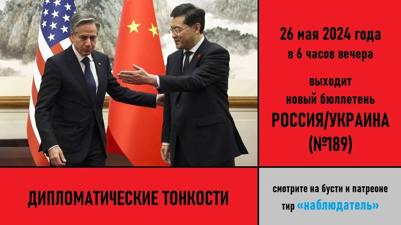 Видео с ютуба от 26 мая 2024 г. Анонс российско-украинского бюллетеня №189. 26 мая 2024 года в 6 часов вечера выходит новый бюллетень РОССИЯ/УКРАИНА №189 "Дипломатические тонкости" Смотрите полную версию на бусти и патреоне на тире «Наблюдатель»: https://boosty.to/galkovsky/posts/85ee3523-3325-4883-96d0-3820490d943a https://www.patreon.com/posts/104967995 Ждём вас!