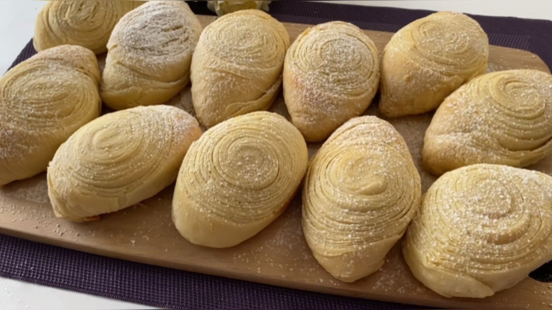 Для теста 2 стакана молока 0,5 чайной ложки соли 2 чайные ложки сахара 1 чайная ложка дрожжей 1 яйцо 150 г сливочного масла муки 6 стаканов размером 200 мл. начинка 300 г миндаля 300 г сахара 1 чайная ложка кардамона 300 г сливочного масла для смазывания - - - - #булочки #слоеноетесто #сдобныебулочки #слоеныебулочки #выпечка #кчаю #булочкисначинкой #рецепты #простыерецепты