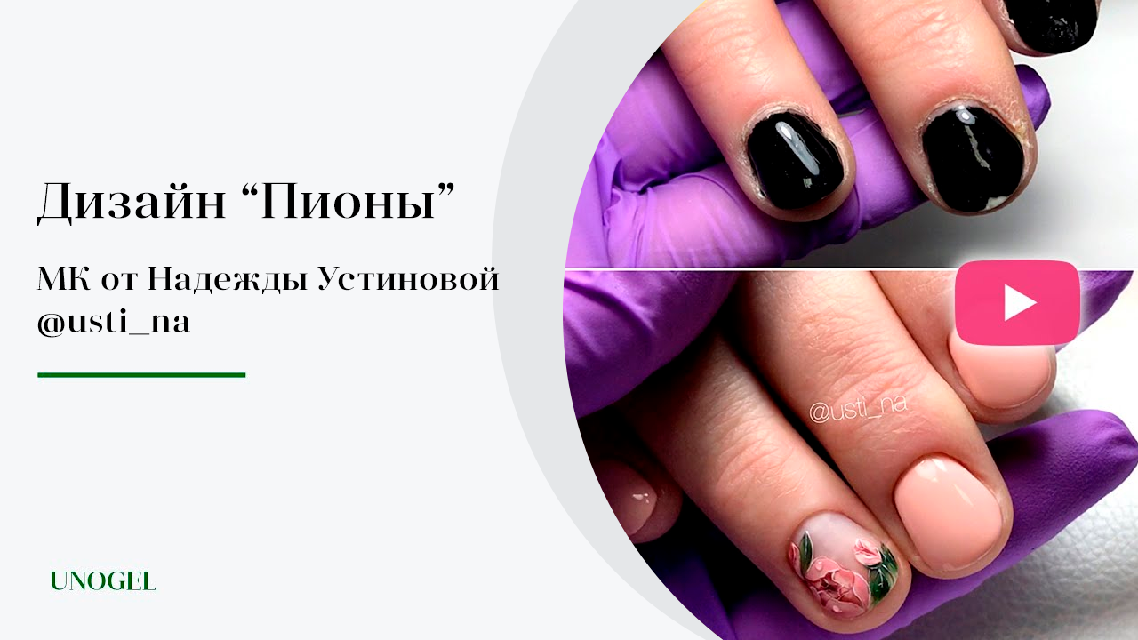 Маникюр с базой Uno Strong. Рисуем пионы?