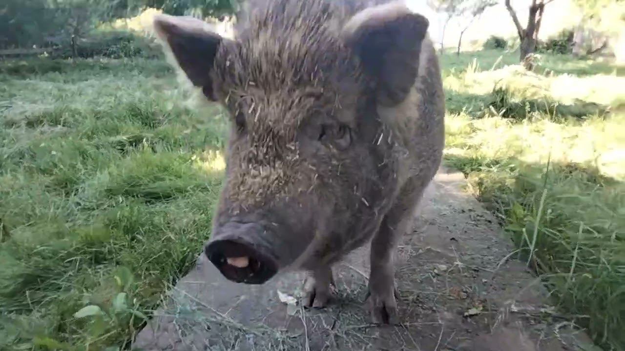 Хрюня тоже вышла посмотреть что там теперь в саду