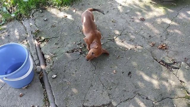 Русско-европейская лайка и такса. Жадный огненный пес.