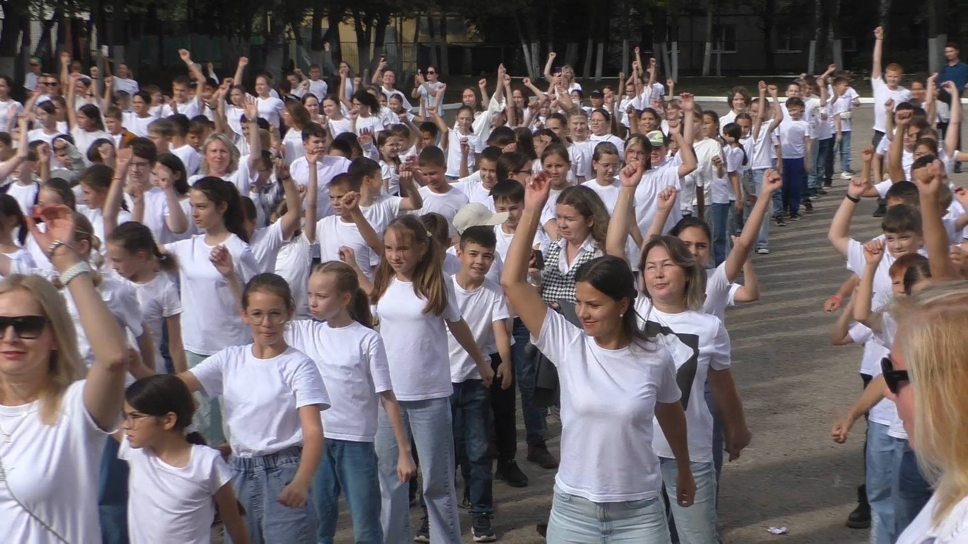 11 сентября, в гимназии №1 состоялся День здоровья. Все дети и педагоги пришли в школу в белых футболках и синих джинсах. От 5-7 классов классов на зарядку пришли и некоторые из родителей.