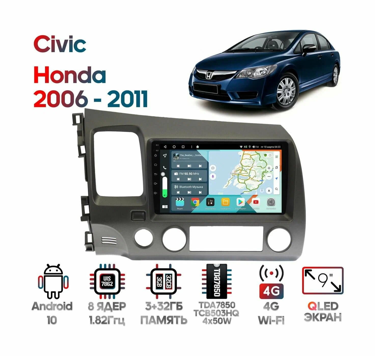 Штатная магнитола Wide Media для Honda Civic 2006 - 2011