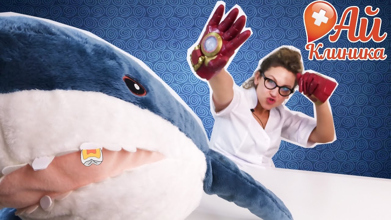 На прием в АЙ-клинику сегодня приплыла огромная АКУЛА! Беднягу беспокоят больные зубы, только вот как Доктор АЙ вылечит их, не лишившись рук? Всё-таки это акула, может случайно и укусить! К счастью, ЖЕLEZНЫЙ CHЕLОВЕК недавно забыл в АЙ-Клинике свои перчатки! Ими и воспользуемся! Смотри наше новое развлекательное видео для детей, чтобы узнать, как Доктор АЙ справилась с кариесом у акулы! Не забудь подписаться, доктор АЙ ждёт тебя и твои игрушки на приём в АЙ-Клинику по адресу: https://www.youtube.com/channel/UCGniralnly1KvmlBMjGEVLA Подписывайся на наших друзей, канал Смешарики Live: https://www.youtube.com/channel/UCy15c4beE539pcPFt4-UrHg Не забудь подписаться на канал СТРАНА ДЕВЧОНОК, чтобы следить за новыми приключениями: https://www.youtube.com/channel/UCCe6oRAVWZFztZJMAujRu7A Заходи на канал, где живут наши лучшие подружки - Бантики-Косички: https://www.youtube.com/channel/UCZJi3695pl6tfkAHp4BLMDA Заходи к нам на сайт: http://www.4screens.ru/ Ищи нас в социальных сетях! ВКонтакте: https://vk.com/club132423271 Фейсбук: https://www.facebook.com/4ScreensShow Твиттер: https://twitter.com/4Screens_Studio Инстаграм: https://www.instagram.com/4screensstudio/